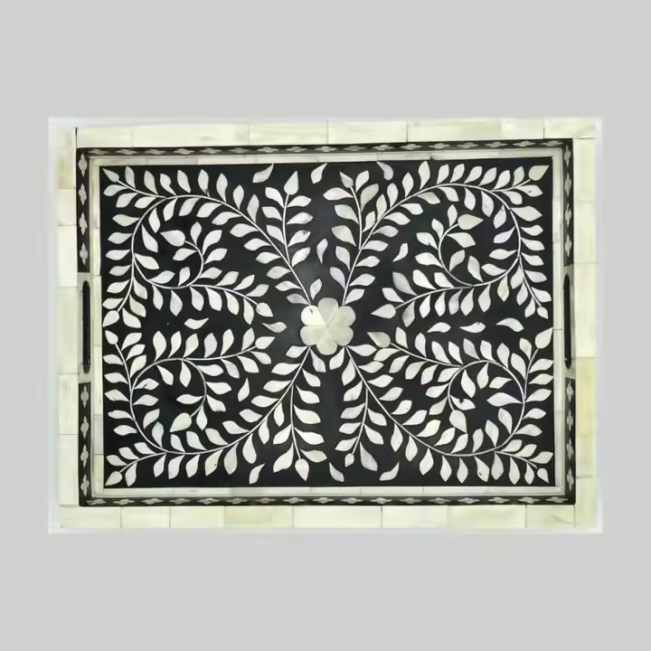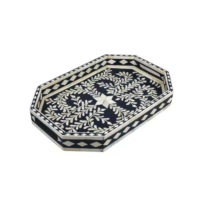 Bandeja con incrustaciones de hueso de forma personalizada para uso en utensilios de cocina de restaurantes de hoteles con bandeja con incrustaciones de hueso de buena calidad de Crescent Crafts