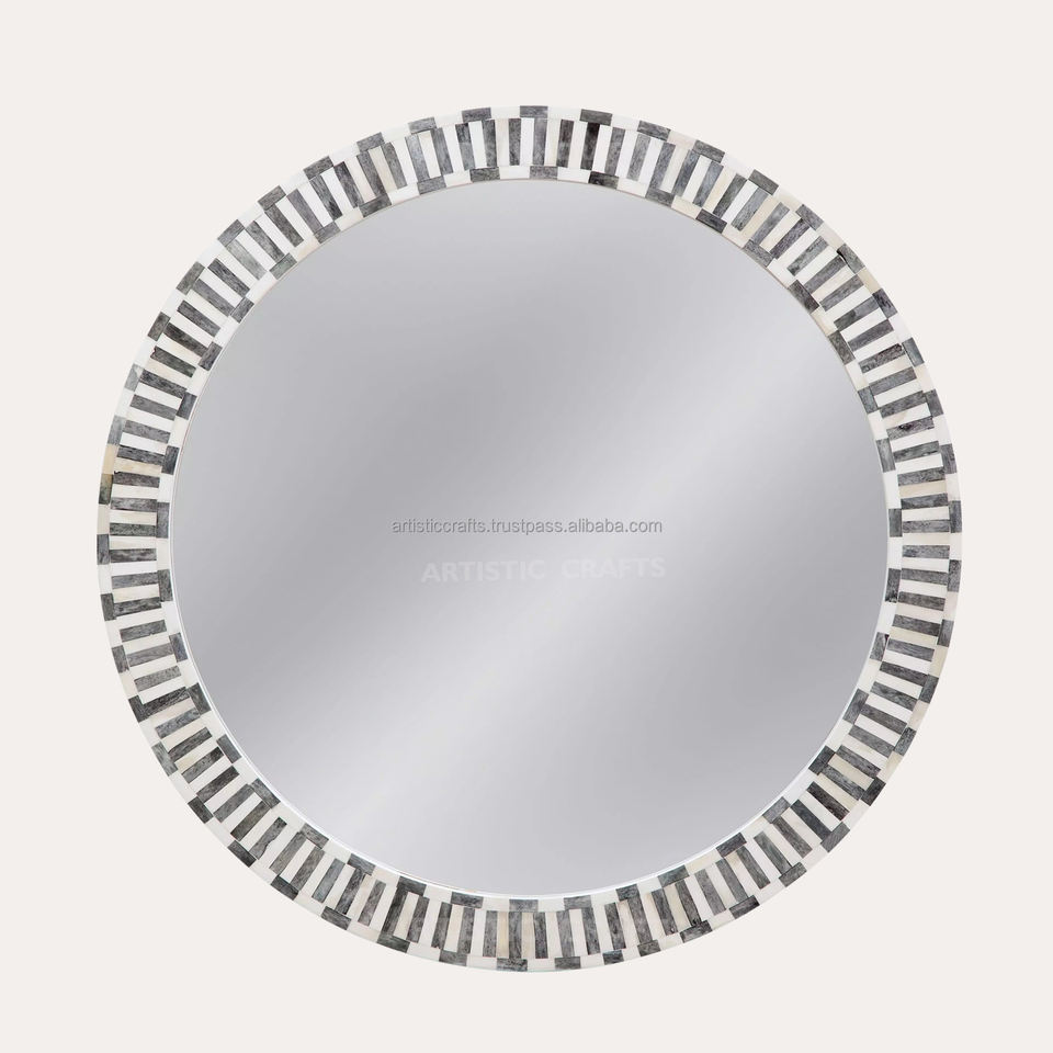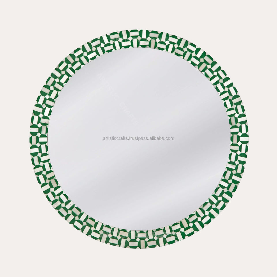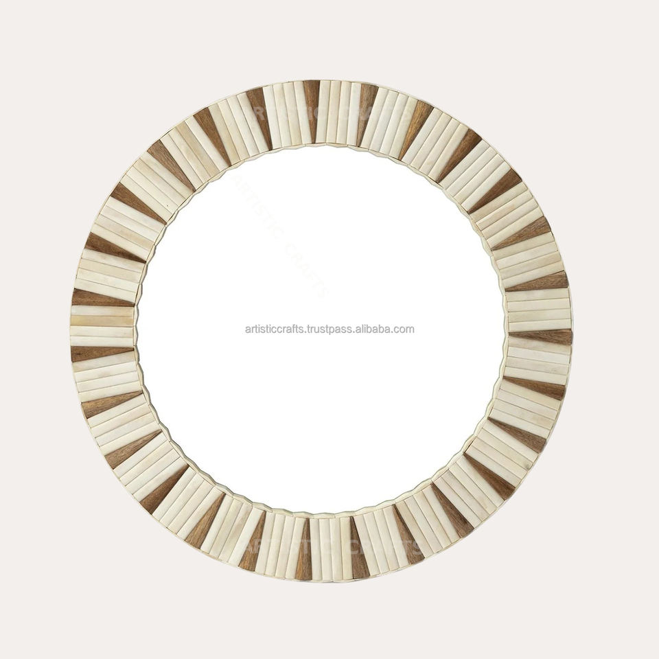 Espejo colgante de pared moderno personalizado hecho a mano madera hueso resina incrustaciones forma y diseño para Diwali o boda propósito decorativo