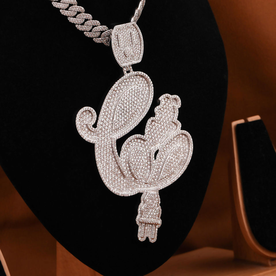 Colgante de diamante cultivado en laboratorio hecho a mano con forma personalizada, estilo Hip Hop, letras cursivas, nombre para joyería corporal de fiesta, plata 925