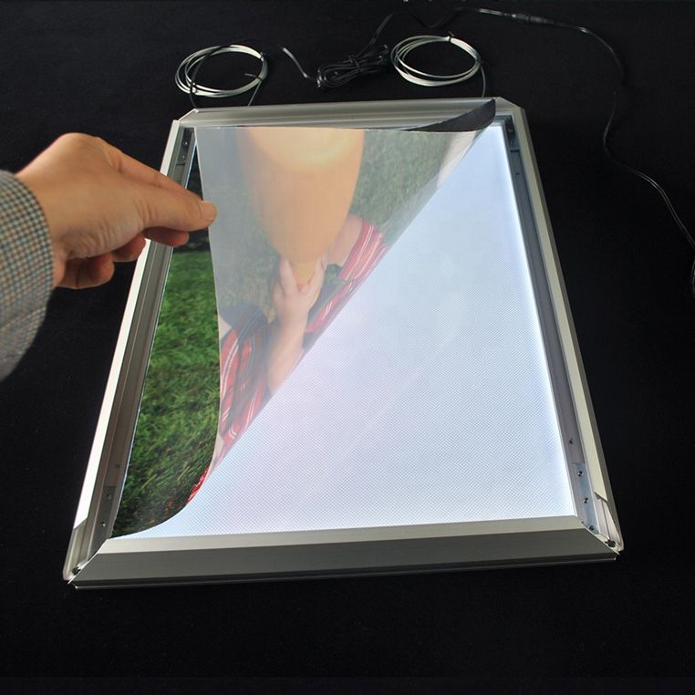 Caja de luz LED para interiores con forma personalizada, marco de aluminio/cUL, certificado CE, apertura a presión, montaje en pared colgante fácil, doble cara, 12V