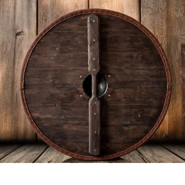 Armadura medieval Escudo de diseñador redondo Hecho a pedido Escudo vikingo Brazo Escudo de traje de madera marrón por Calvin artesanía