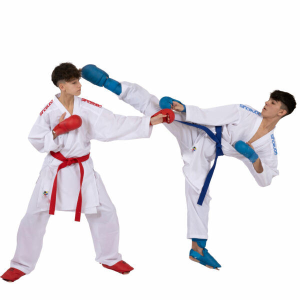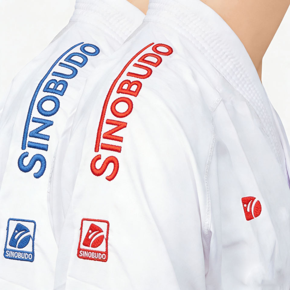 Karategi Ultraligero Personalizado con Bordado en el Hombro Azul/Rojo para Karate y Kumite