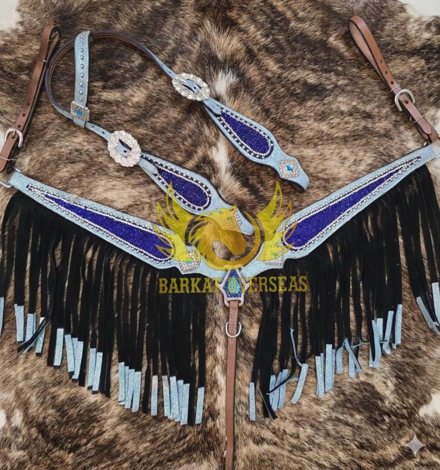 Conjunto de aparejos para caballo de cuero genuino con pedrería brillante personalizada, ligero, de temporada, estilo western, equipo para caballo.