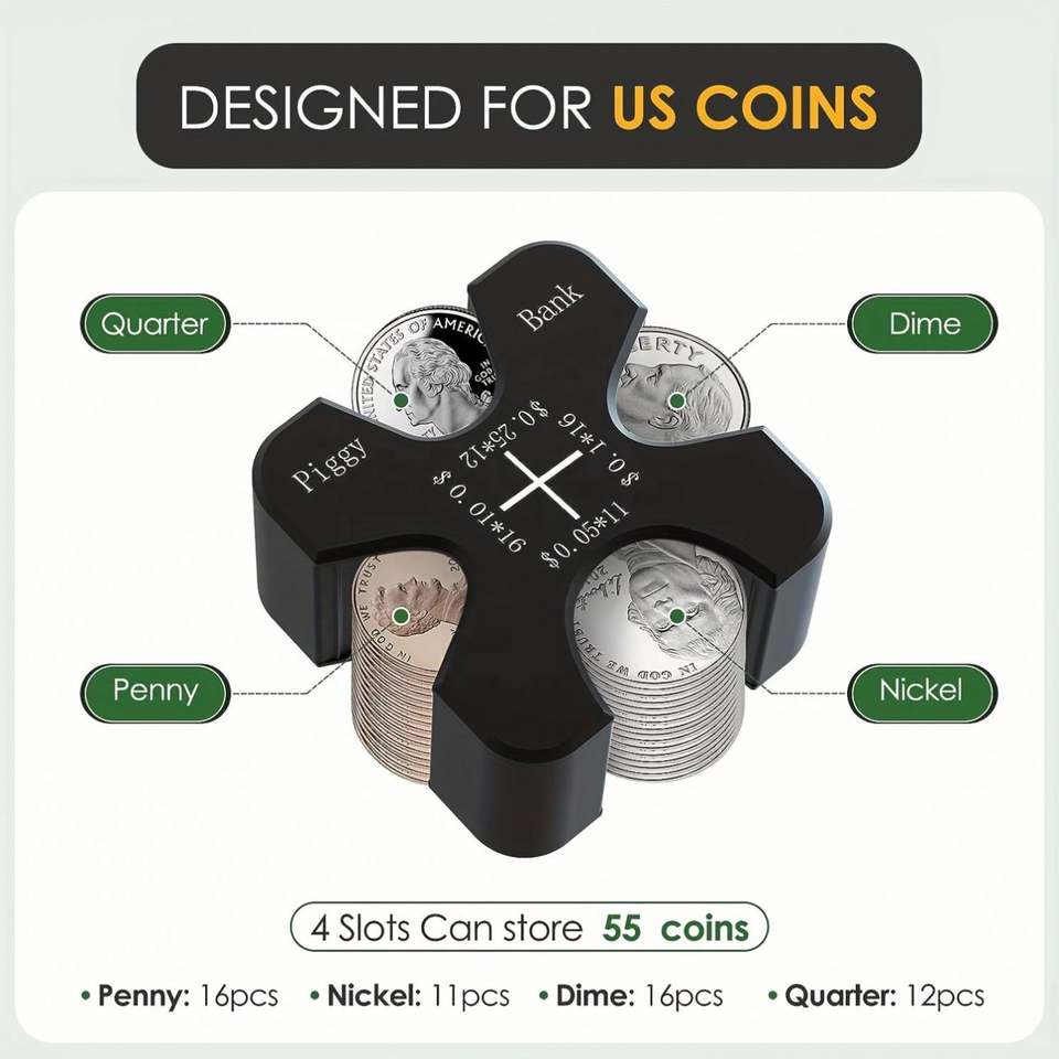 Portamonedas de Silicona Personalizado para Auto - Organizador Portátil para 55 Monedas, Compatible con Monedas de un Centavo, Cinco Centavos, Diez Centavos y Veinticinco Centavos