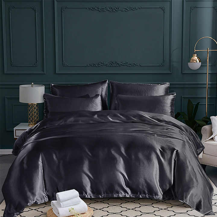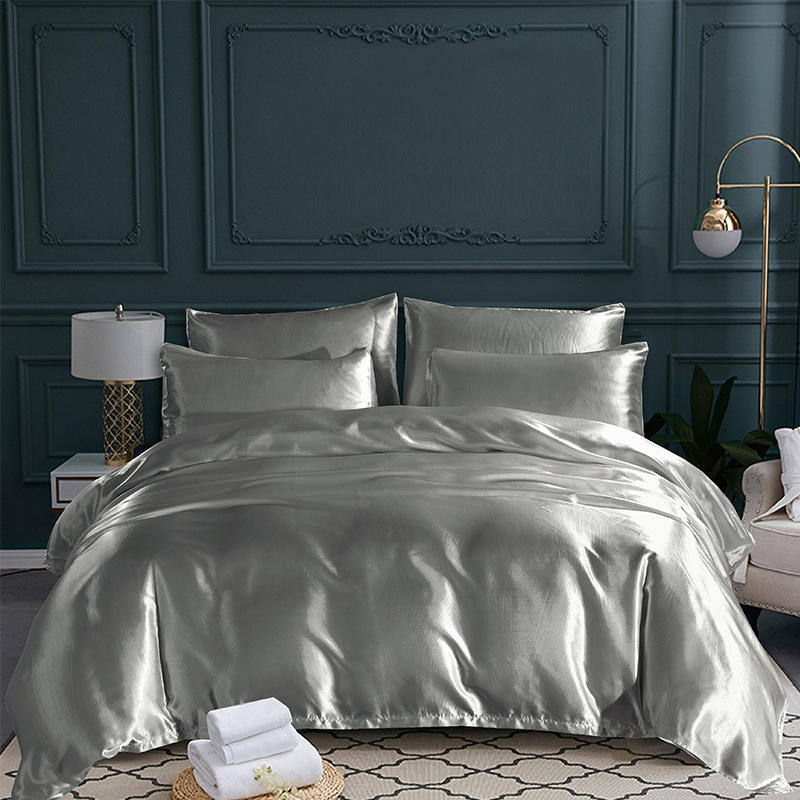 Juego de cama de satén como seda personalizado juego de edredón de cama doble de lujo rojo vino con cierre de cremallera