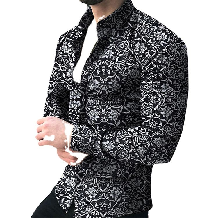Camisetas de vestir ajustadas de seda personalizadas para hombre, ropa informal, camisas de manga larga estampadas para hombre, camisas de moda