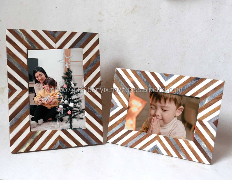 Marco DE FOTOS acrílico plateado personalizado con incrustaciones de metal coloreado, hueso, resina y cristal, decoración perfecta para el hogar