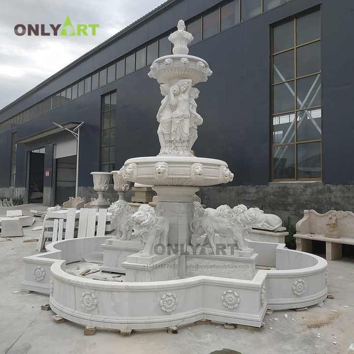 Fuente de agua con diseño personalizado para exteriores, decoración de jardín y casa, grande, de piedra blanca, mármol, León, para niños