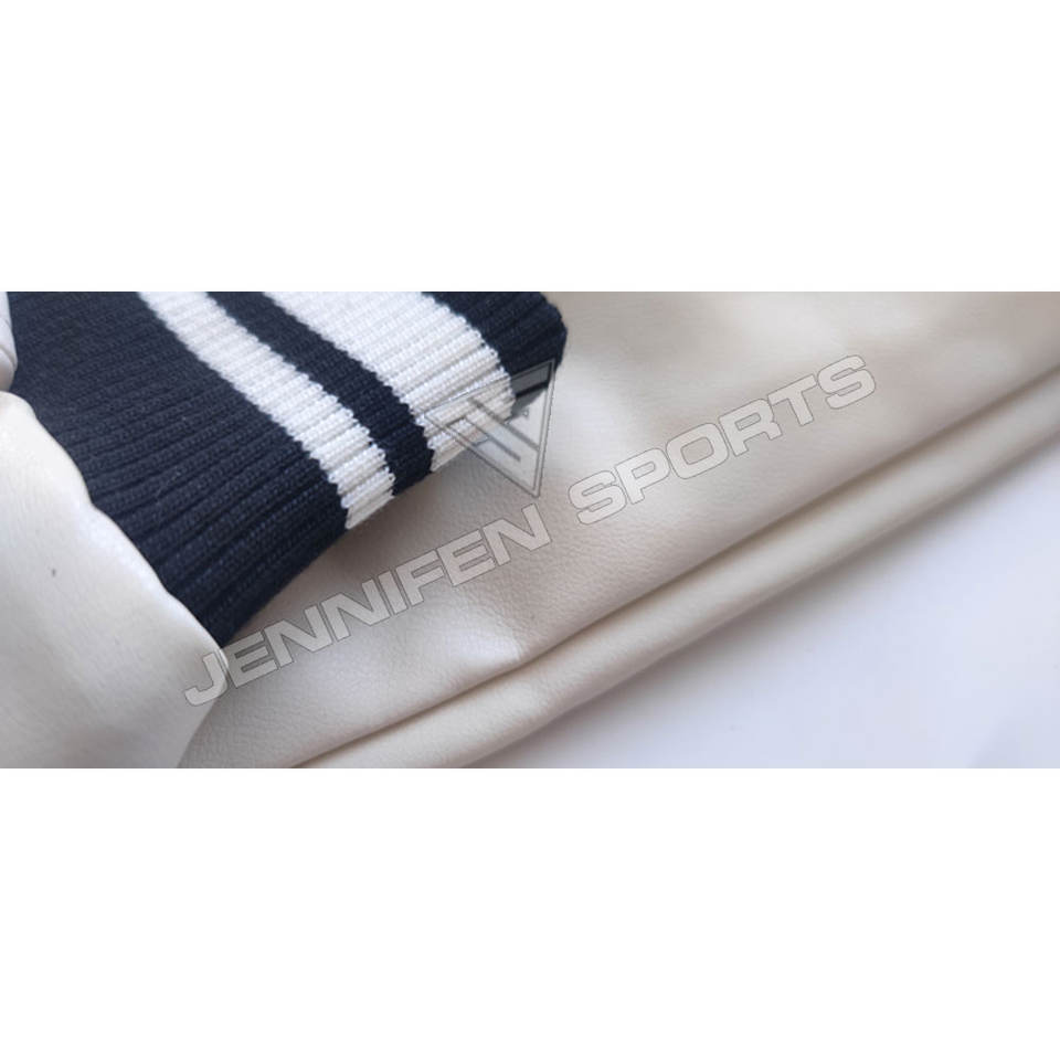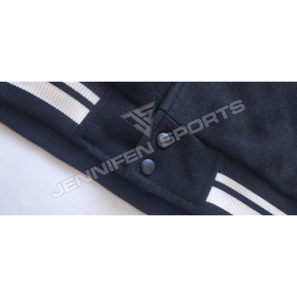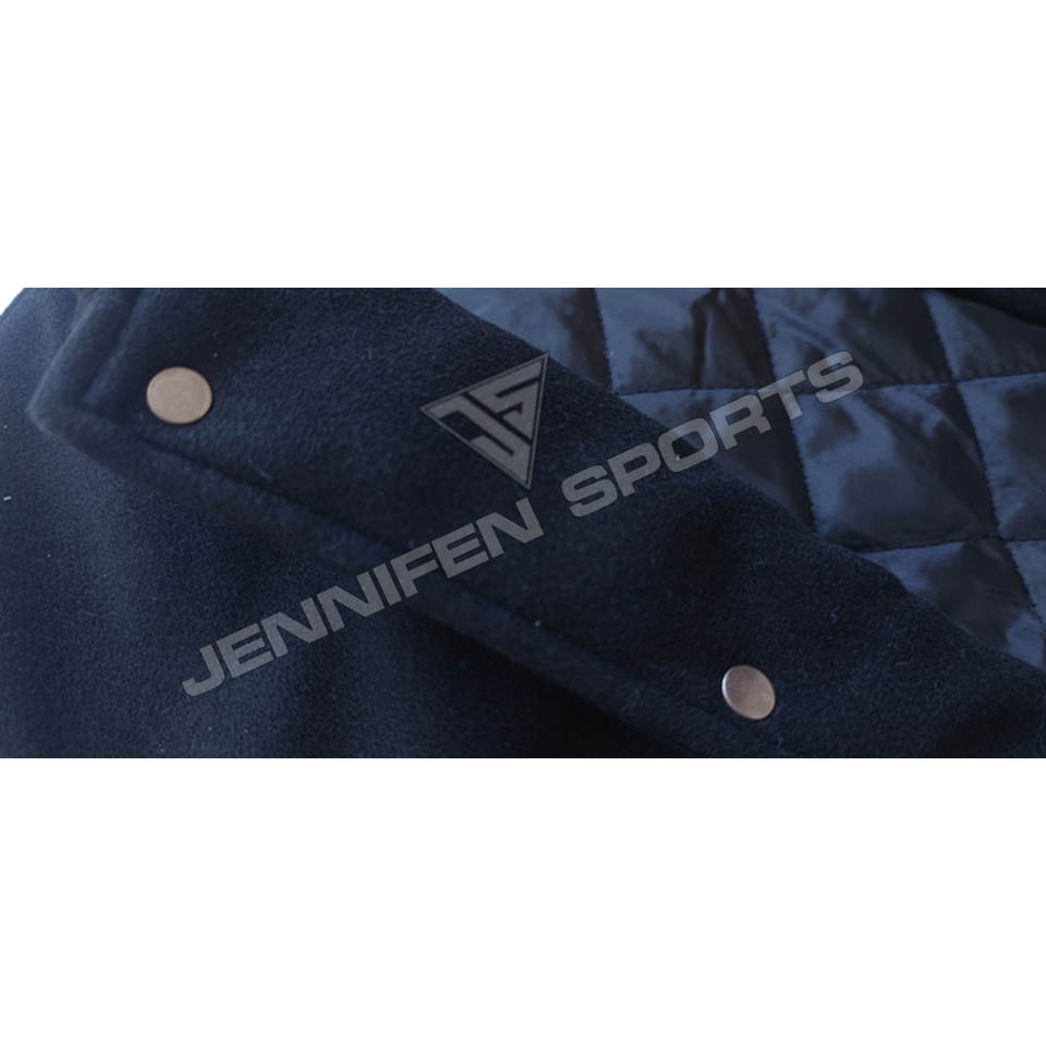 Custom Simple Plain Varsity Jacket Lana Shell Mangas de cuero Botón de cierre Forro acolchado-Venta al por mayor para el invierno sin cuello