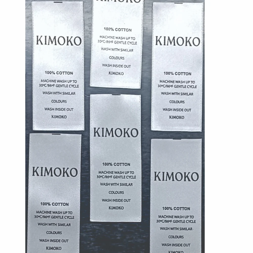 Etiqueta de Cuidado de Ropa Personalizada de Satén Impresa de 0.75 x 2 Pulgadas, Rectangular, Diseño 3D, Lavable, con Impresión en Serigrafía
