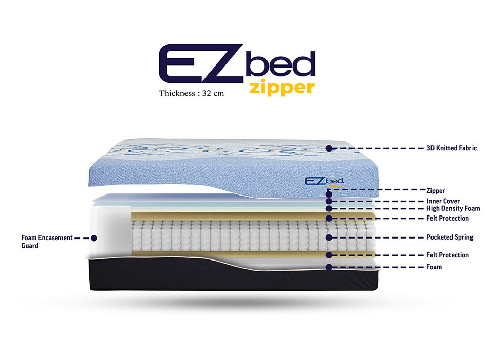 Funda de poliéster tejida en 3D de tamaño personalizado para colchón de cama cremallera Ezbed de alta densidad moderna para aplicaciones de dormitorio hecho en Indonesia