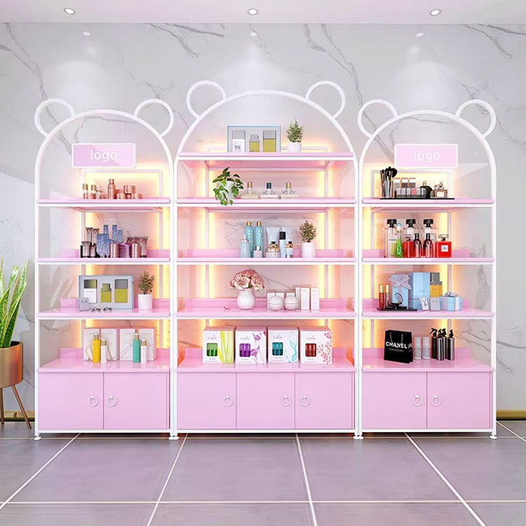 Vitrina de tamaño personalizado, tienda minorista, productos de belleza, escaparate LED, esmalte de uñas, vitrinas cosméticas para negocios