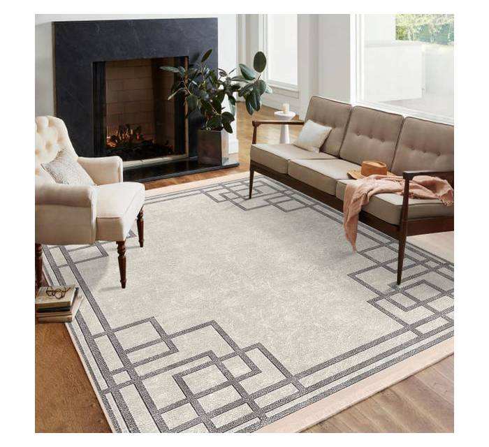 Alfombra Geométrica de Estilo Griego con Borde Personalizado, Alfombra Minimalista de Estilo Nórdico, Tapete Impreso de Alta Densidad, OEM/ODM Disponible