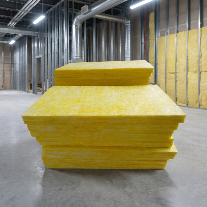Panel de Lana de Vidrio de Alta Densidad, Tamaño Personalizado, 96 kg/m³, para Muros Cortina y Divisiones, No Inflamable, Clase A, Resistente a la Humedad