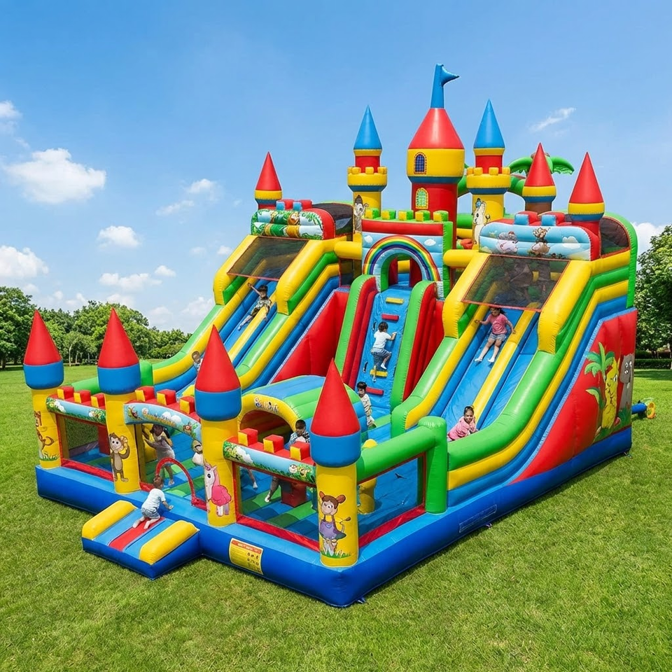 Castillo Inflable de Tamaño Personalizado, Castillo Hinchable, Tobogán Combinado, Lona de PVC, Alquiler para Fiestas Infantiles, Negocio de Eventos, Uso Intensivo