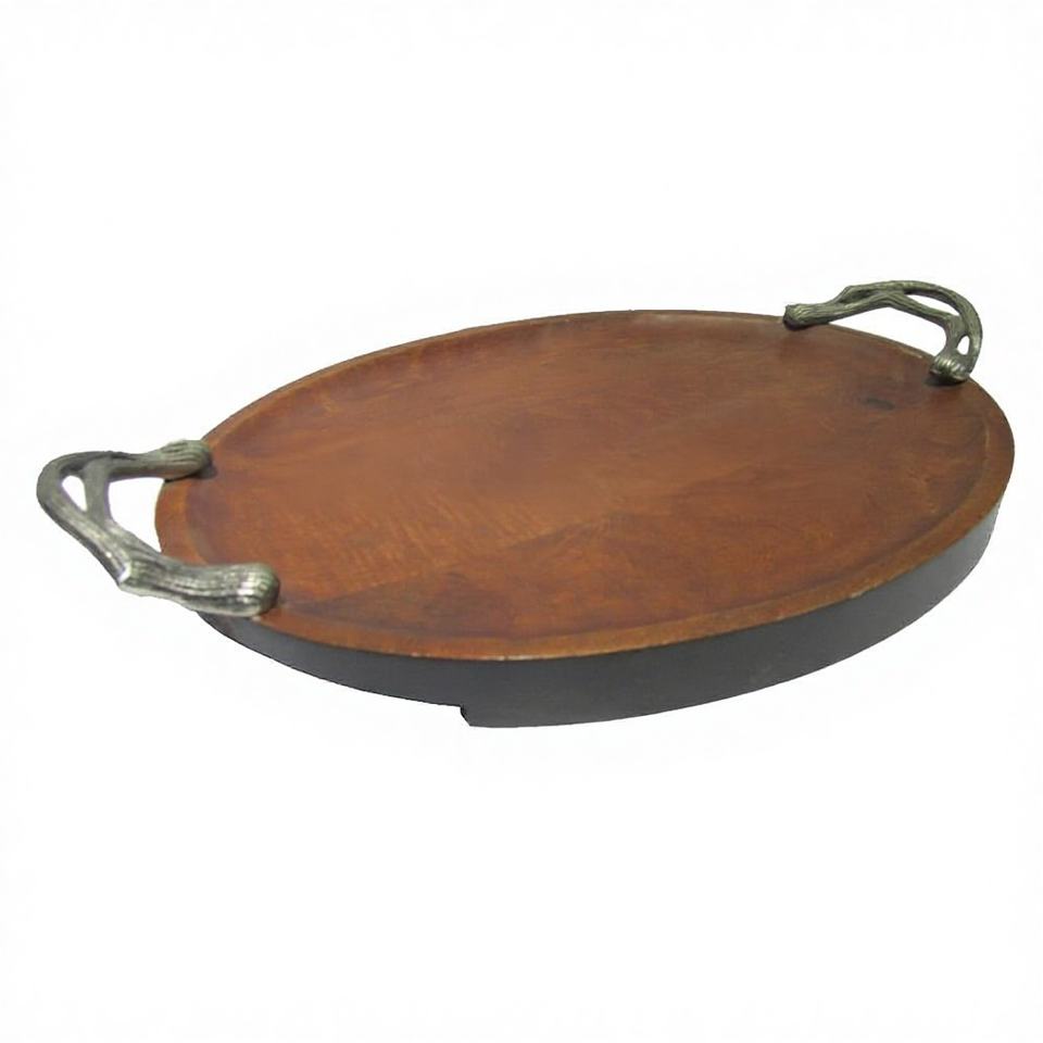 Bandeja Redonda de Madera de Mango con Asas de Metal – Bandeja de Cocina y Té Ecológica y Duradera de Tamaño Personalizado para Uso Doméstico