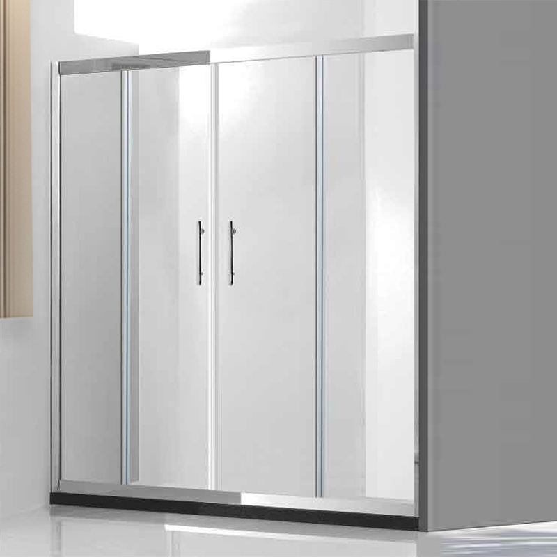 Puerta de Ducha Moderna a Medida con Doble Deslizamiento y Marco de Acero Inoxidable 304 Pulido, Sellado Impermeable Antifugas