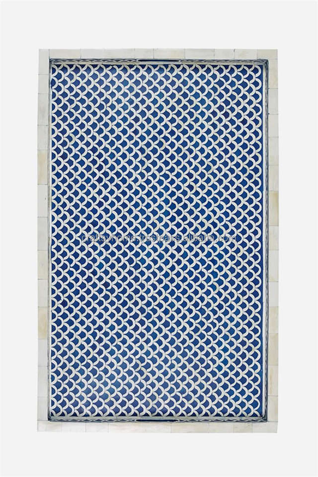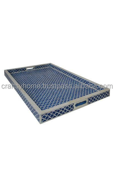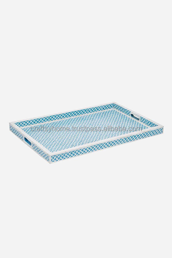 Bandeja decorativa de resina MDF de estilo moderno de tamaño personalizado bandeja de servicio con incrustaciones indias bandeja de incrustaciones de hueso para restaurante en casa exportador de fabricante