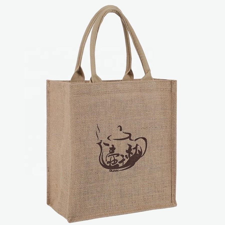 Bolsas de mano de Yute natural de uso diario informales impresas de tamaño personalizado bolsos de lona promocionales con asa de algodón regalo de compras viaje
