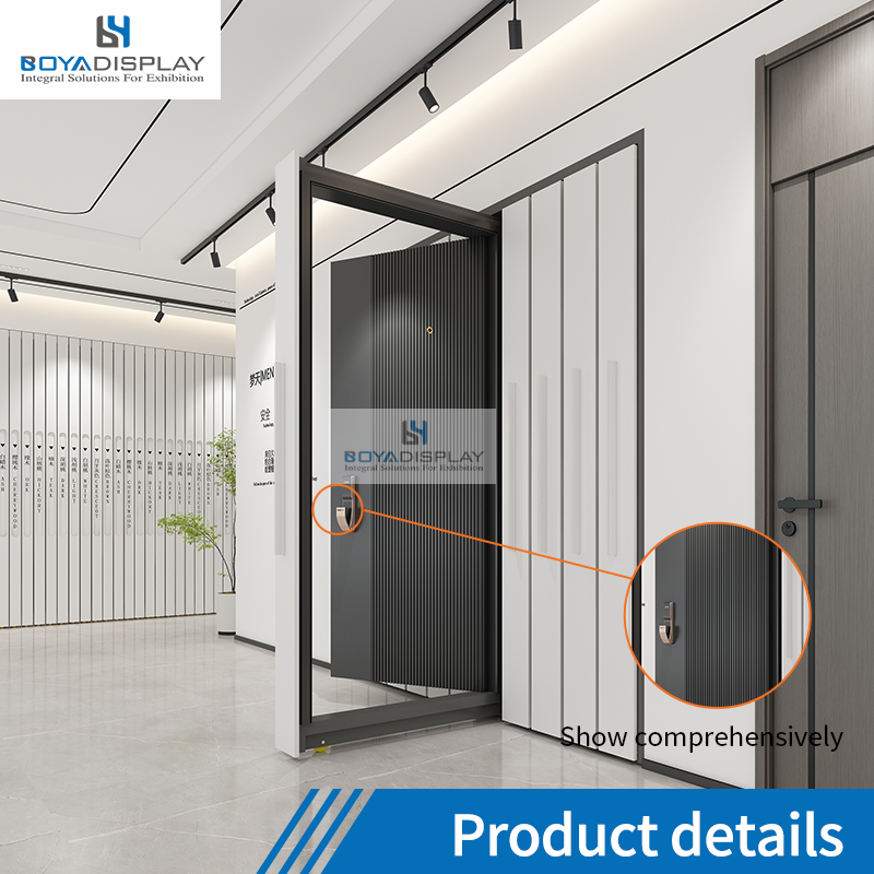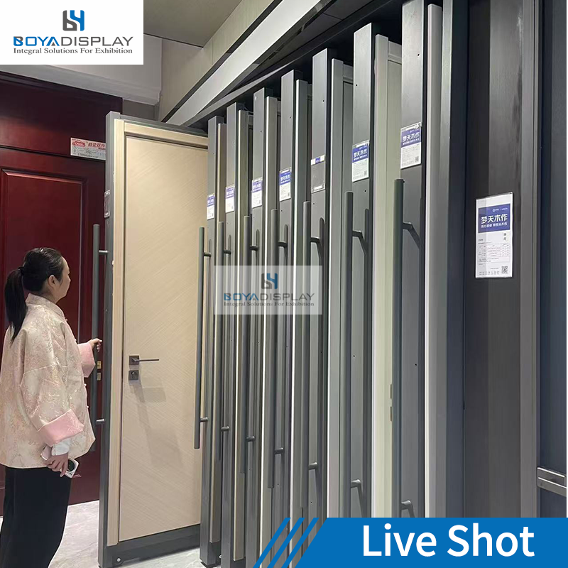 Exhibidor de Puerta Extraíble a Medida para Sala de Exposiciones con Brazos Ajustables y Rieles Resistentes para Puertas Interiores de Comercios