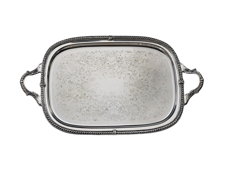 Bandeja de servicio rectangular de tamaño personalizado, Latón chapado en plata antigua y acero inoxidable para comida, hogar o uso en hoteles