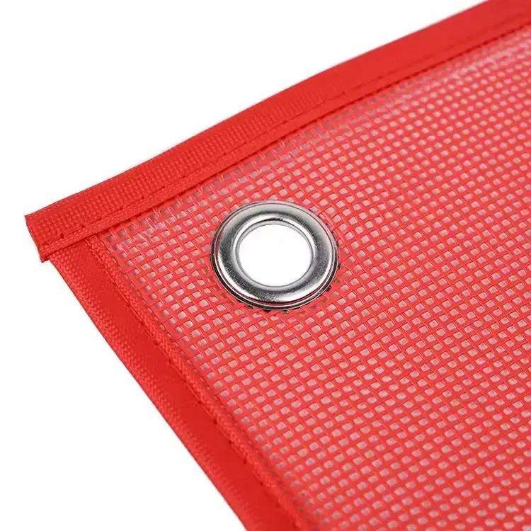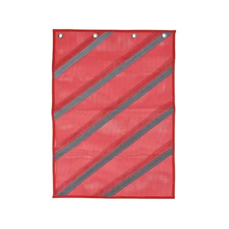 Bandera de seguridad reflectante de tamaño personalizado, antiarrugas, impresa en serigrafía, para camiones de construcción y remolques, de malla roja, con ojales