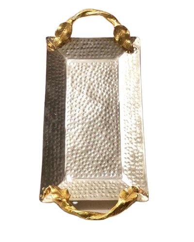 Bandeja cuadrada de tamaño personalizado con mango de latón dorado, bandeja de servicio de madera de acero y hierro de diseño, uso doméstico, comida, regalo, característica decorativa