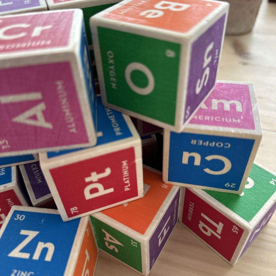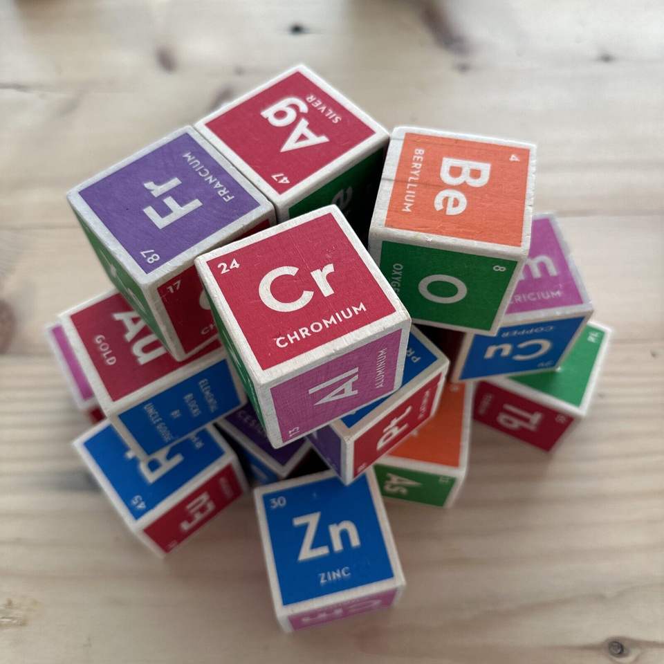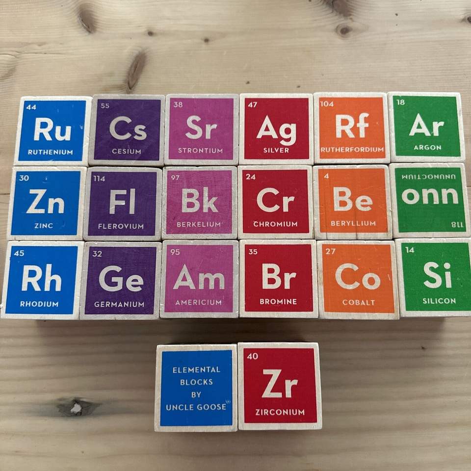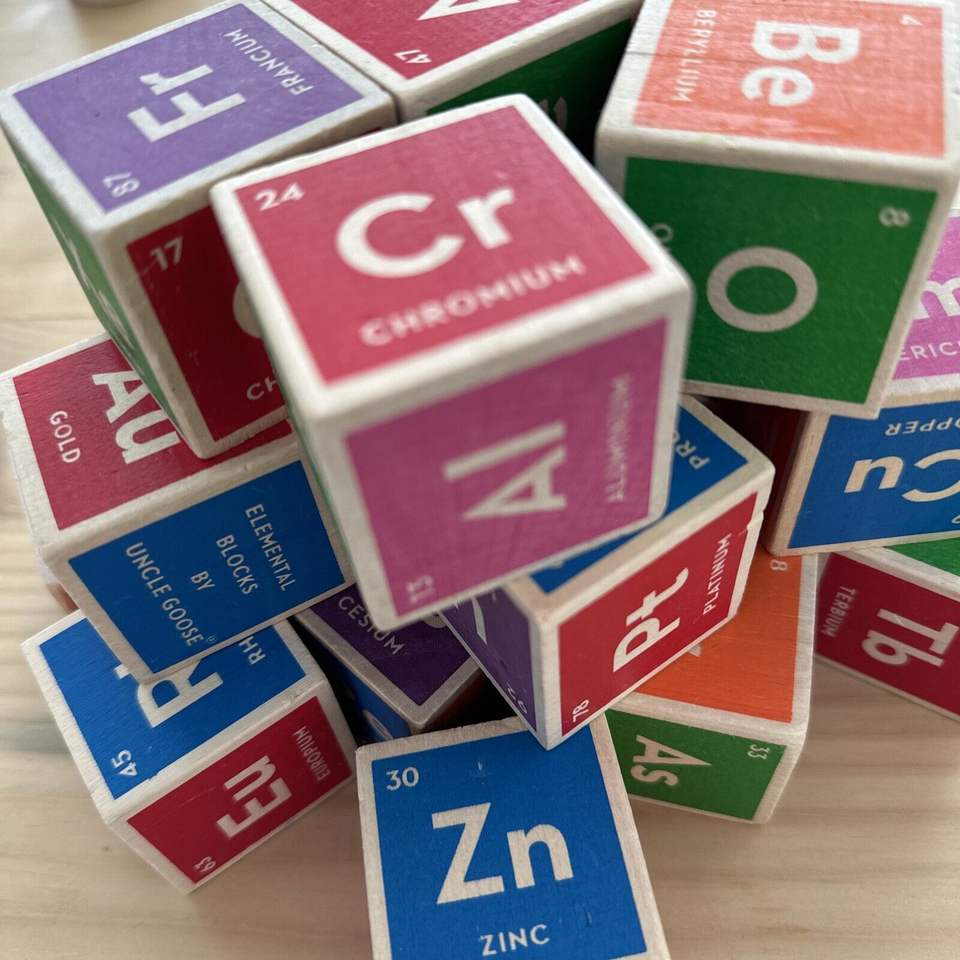 Juego de Bloques Elementales de Madera con Colores de la Tabla Periódica de Uncle Goose, Tamaño Personalizado, Juguetes Matemáticos Montessori, Dados