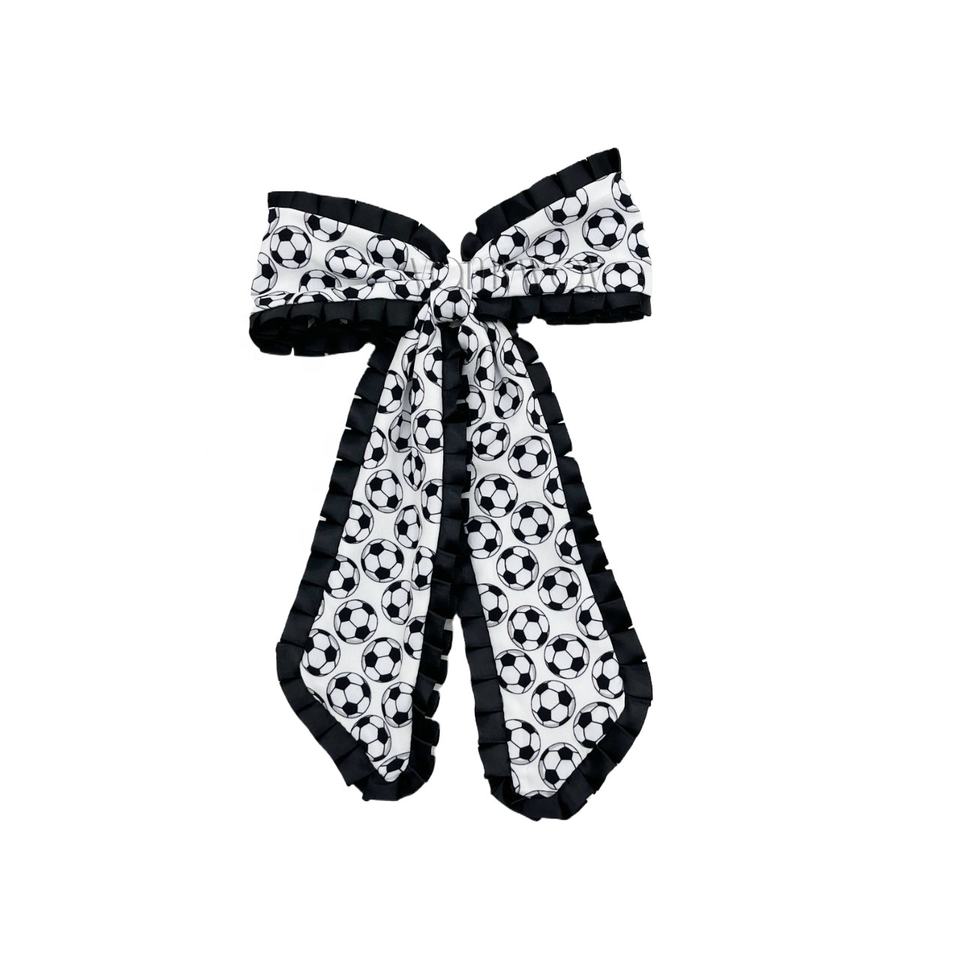 Lazos de pelo de fútbol de tamaño personalizado y patrón con ribete de borde con volantes College Soccer Sport Game Day Holiday Hair Clips Pigtail Bow