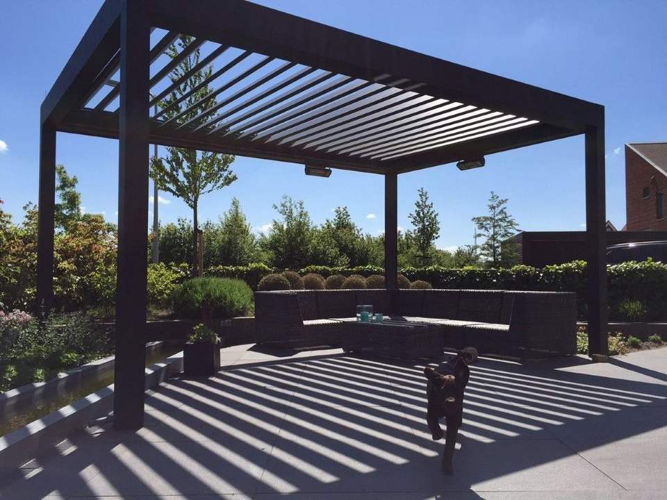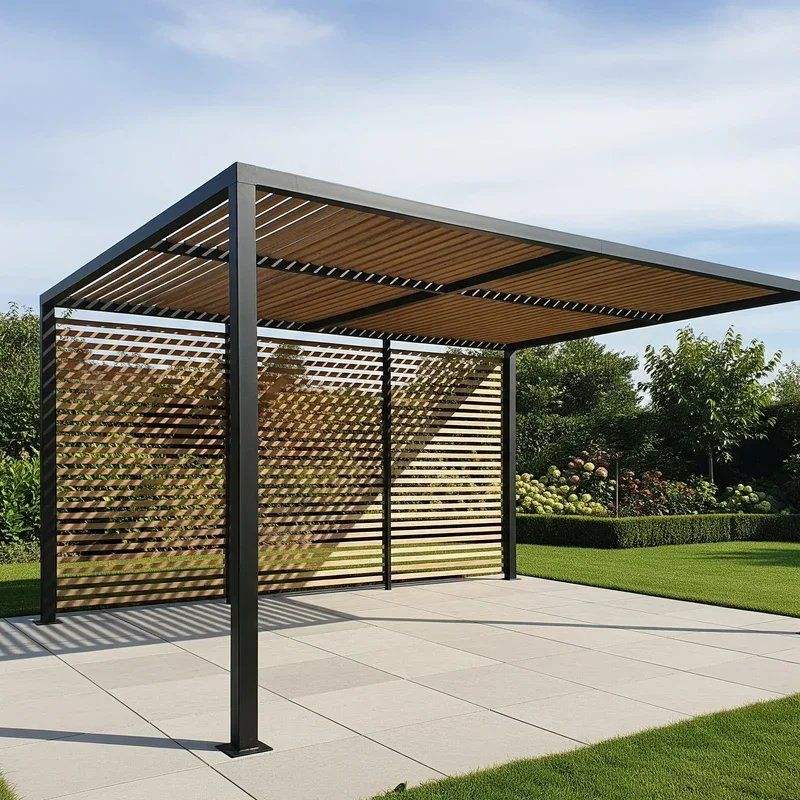 Pérgolas Bioclimáticas de Aluminio a Medida con Persianas Manuales, Gazebo con Recubrimiento en Polvo para Exteriores, para Casa, Apartamento, Villa de Lujo, Estilo Natural