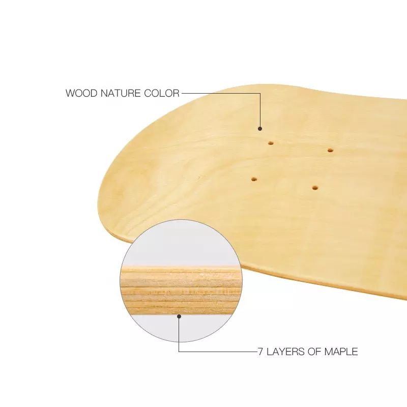 Monopatín personalizado de madera cóncava, 7 capas, cubierta de monopatín en blanco