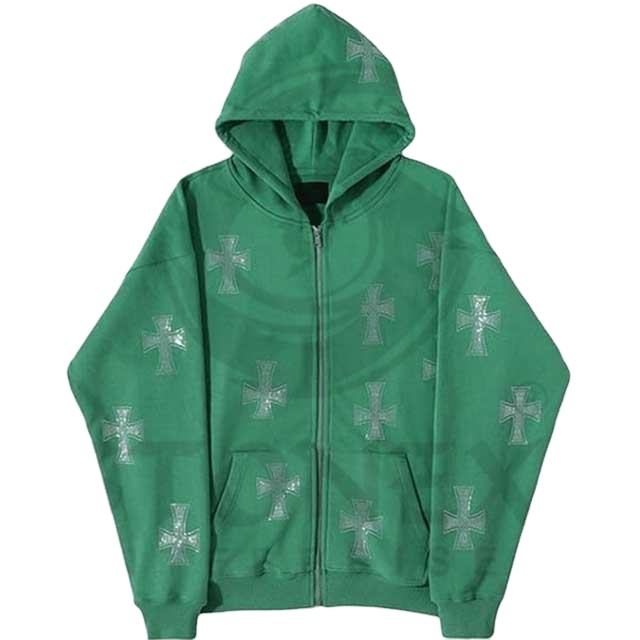 Sudadera con capucha y cremallera con diamantes de imitación y esqueleto personalizado, Sudadera con capucha con diamantes de imitación personalizada con alta calidad