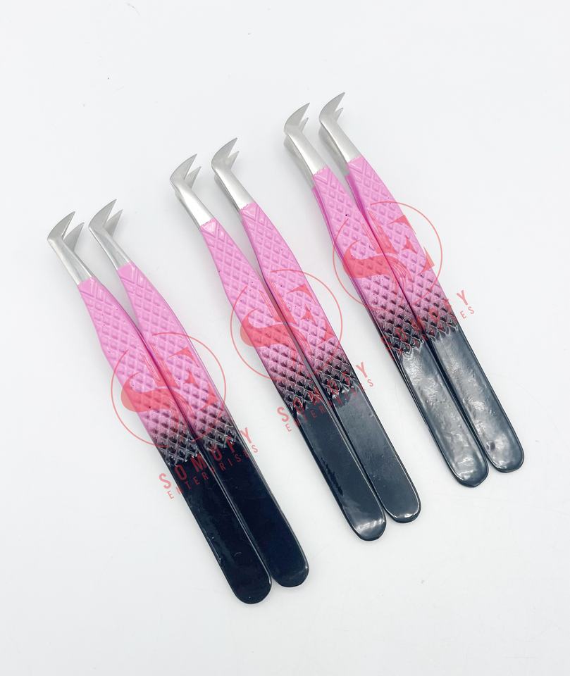Pinzas de pestañas profesionales de volumen de bota delgada personalizadas, sujeción fuerte y duradera, de 10mm de etiqueta privada extensiones de pestañas, fibra sostenible