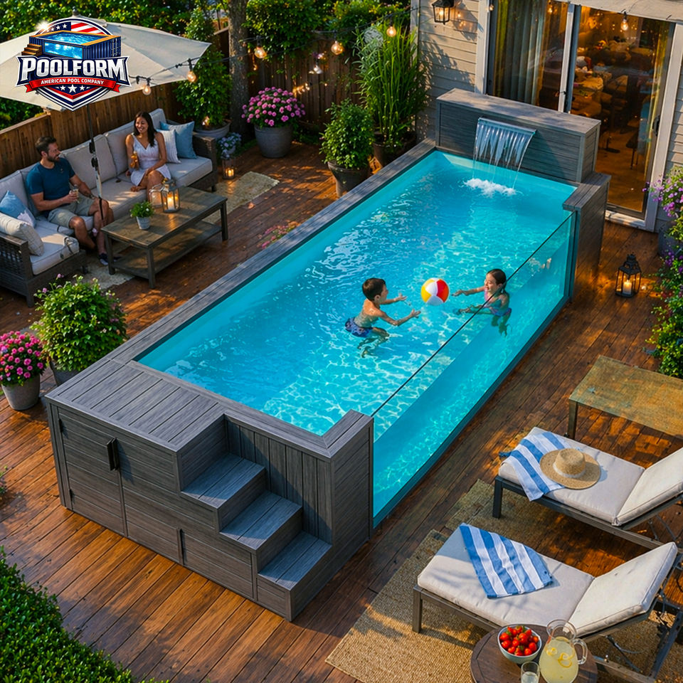 Piscina de Hidromasaje Familiar Pequeña Personalizada, Piscina Elevada para Exteriores con Ventana Resistente a los Rayos UV y a la Corrosión, Fabricada en Fibra de Vidrio