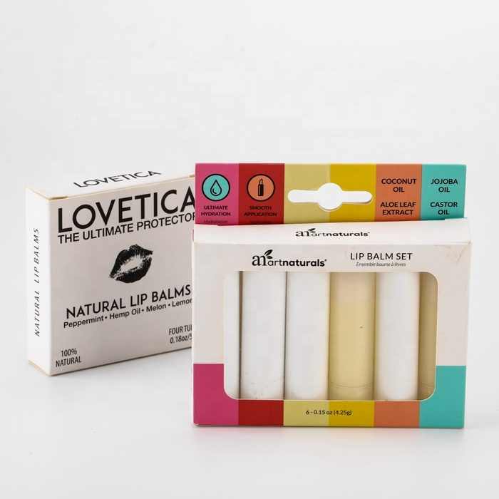 Caja Cosmética Plegable Personalizada para Lápiz Labial, Impresión a Todo Color, Empaque de Papel Blanco para Protector de Bálsamo Labial