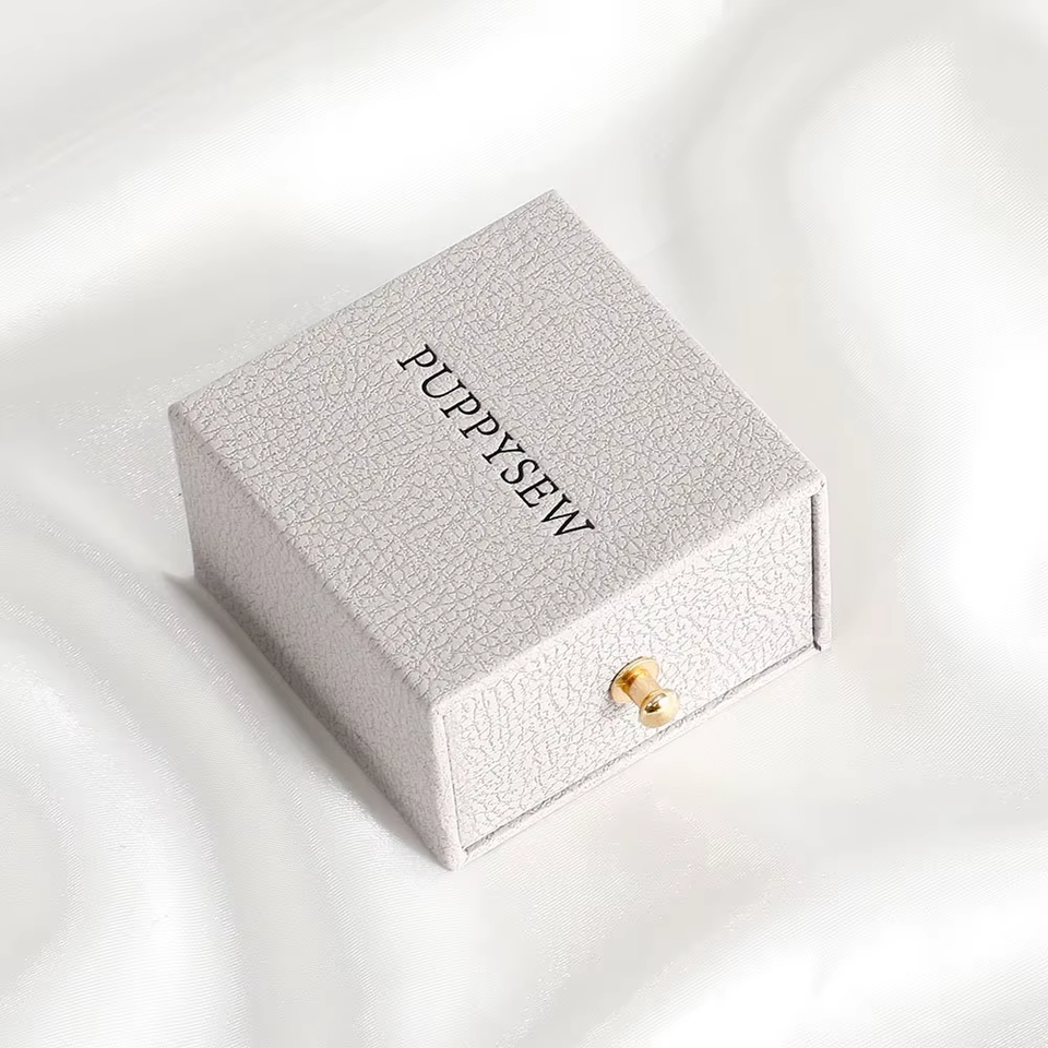 Caja de embalaje de cajón de anillo de cartón de papel de joyería cuadrada pequeña personalizada con logotipo impreso bolsa de cajón cierre de hebilla de mango de Metal