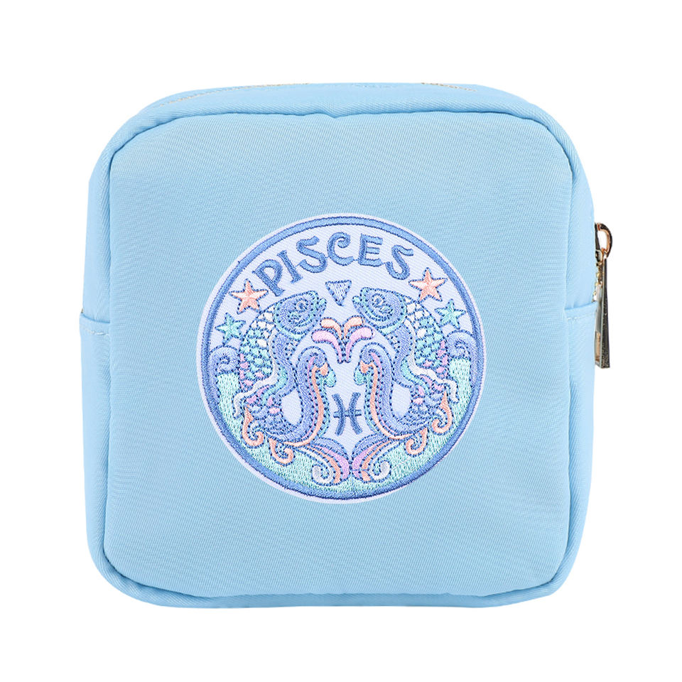 Pequeña bolsa de cosméticos personalizada logotipo bordado viaje impermeable nailon estuche de cosméticos bolsa de maquillaje grande del zodiaco de nailon