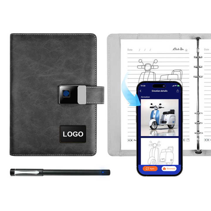 Cuaderno de cuero inteligente personalizado Pantalla de papel sincronización agenda grabación cuaderno de cuero AI libro de pintura bolígrafo inteligente Bloqueo de huellas dactilares
