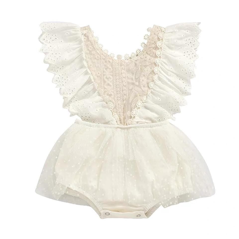 Vestidos de Encaje y Tul sin Mangas con Botones a Presión Personalizados para Bebés Niñas, Romper de Verano para Recién Nacidas