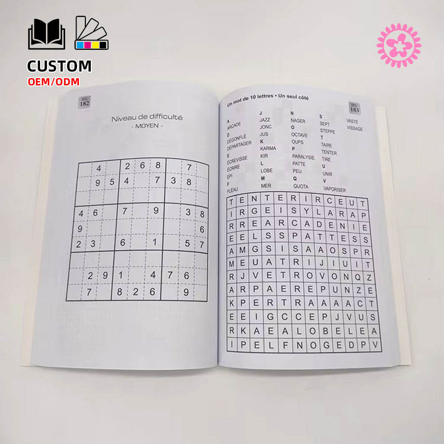 Libro de rompecabezas impreso para adultos, rompecabezas con tapa suave personalizada, palabra serach, número, crosword, sudoku
