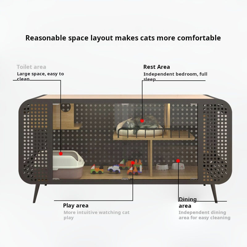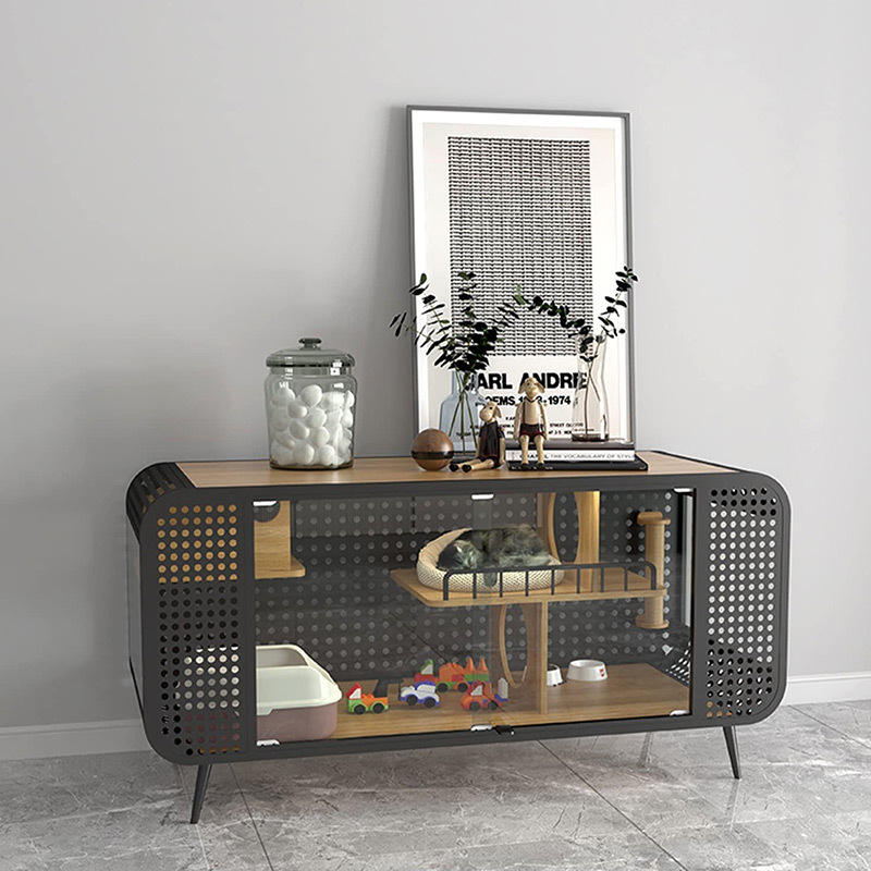 Gabinete de TV para Sala de Estar y Jaula para Gatos de Madera Maciza Todo en Uno Personalizado con Estructura de Acero, Gran Espacio y Patrón Floral para Interiores