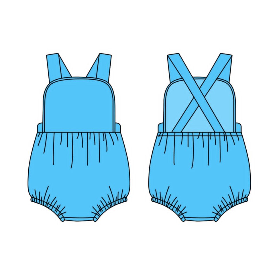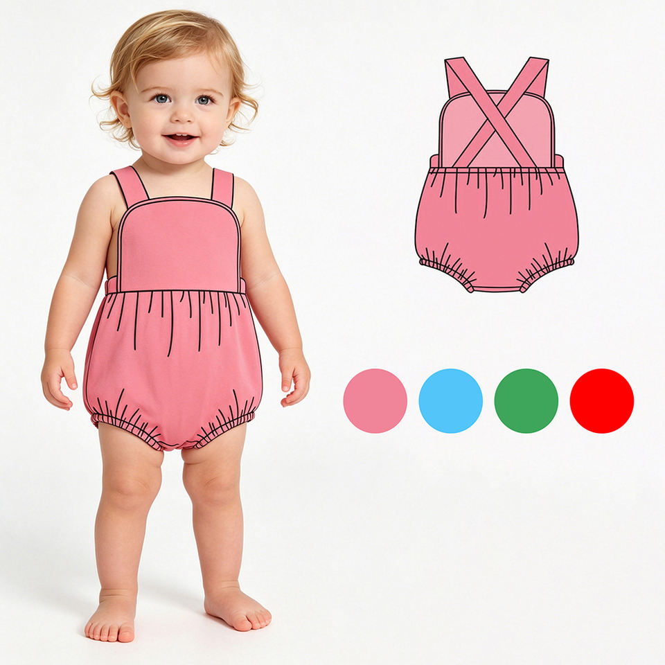 Mono de algodón de color liso personalizado para bebé, sin espalda, con tirantes, para verano, venta al por mayor, ropa de boutique, ropa de fábrica para bebés y niños pequeños