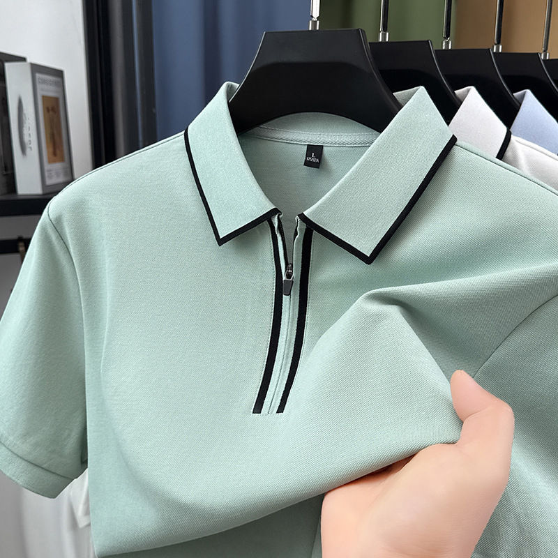 Polo de manga corta para hombre, de algodón de color liso, con media cremallera, informal, fresco para verano, de alta calidad, con cuello tipo solapa