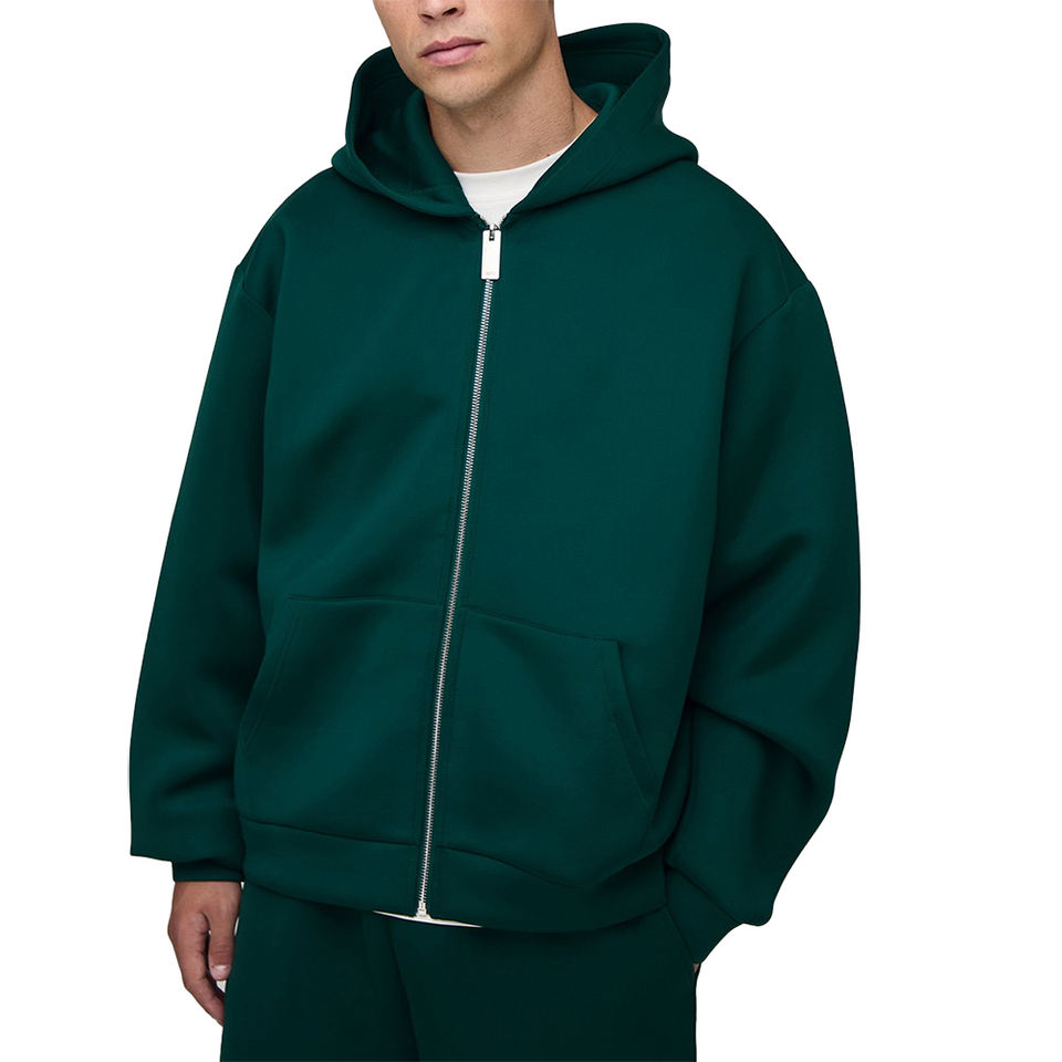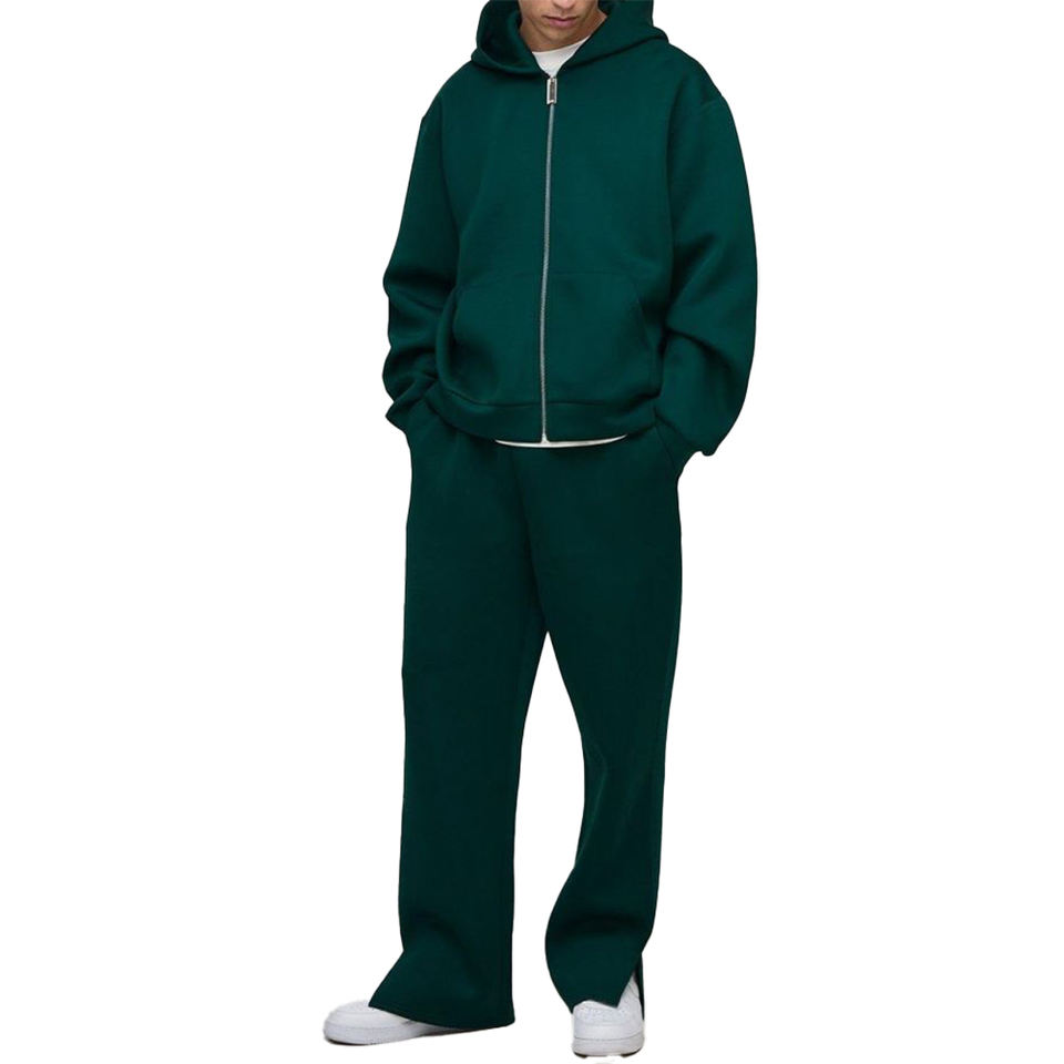Sudadera con cremallera de latón verde sólido personalizada, venta al por mayor, dos PC, 100% algodón, chándal acampanado para hombre