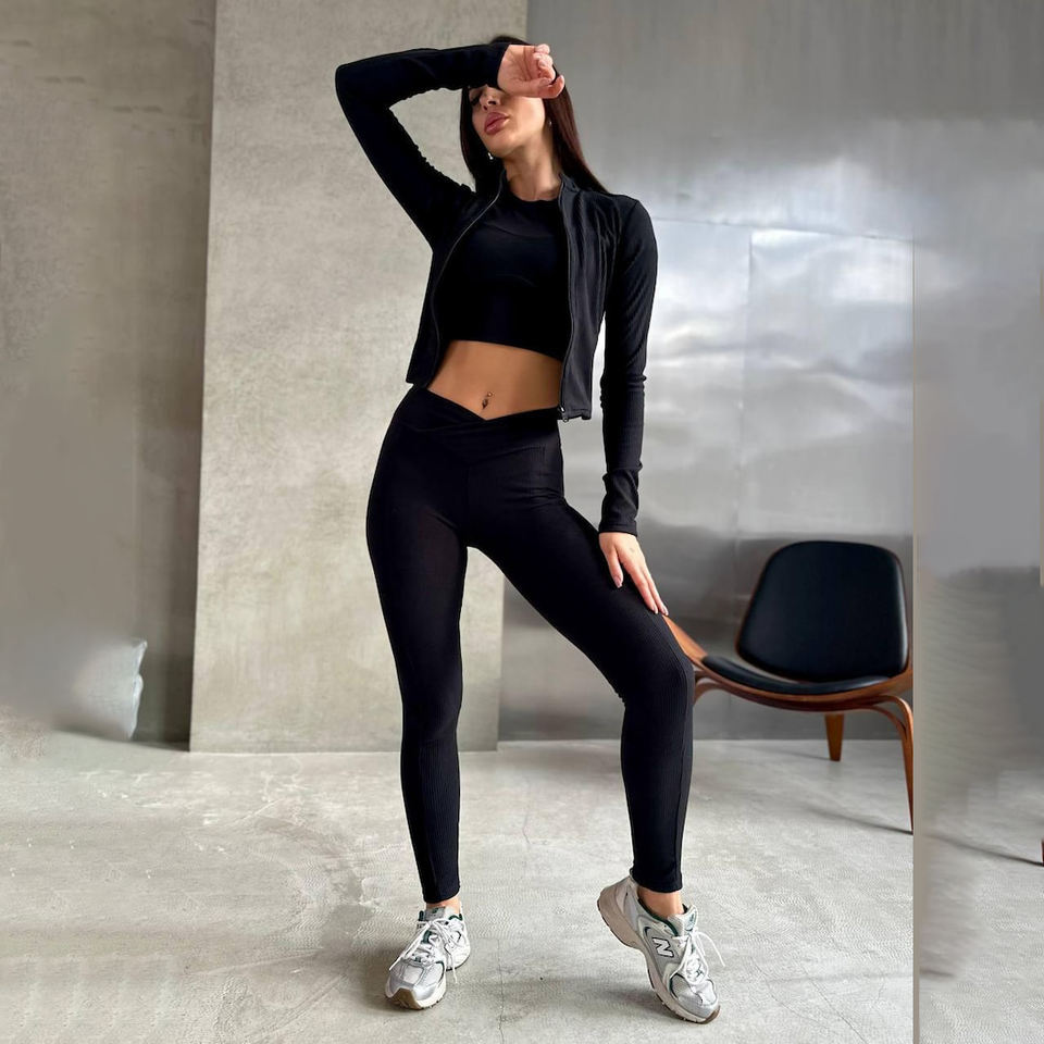 Conjunto Deportivo de 3 Piezas de Alta Calidad para Mujer, con Logotipo, Talla Grande, Sujetador Deportivo y Leggings, para Gimnasio, Fitness y Yoga