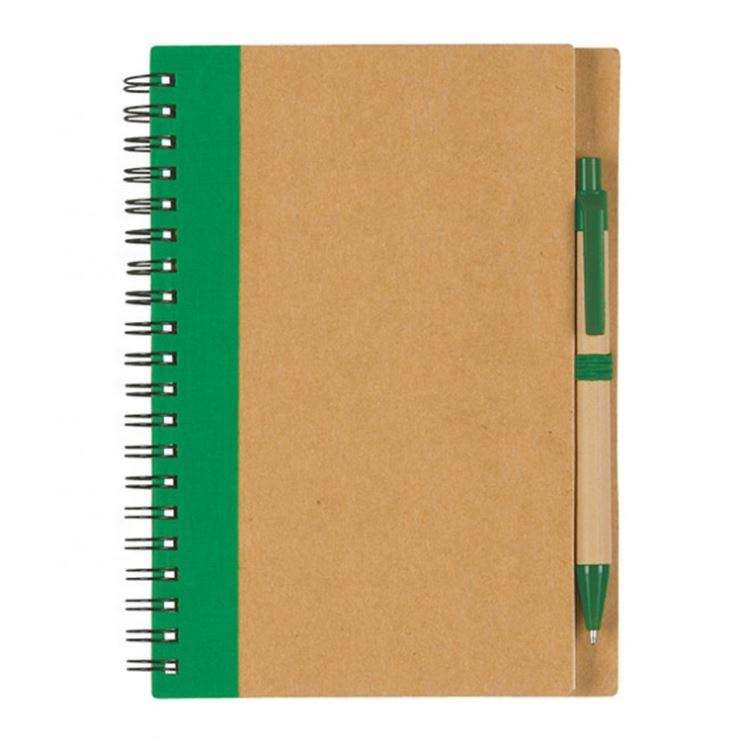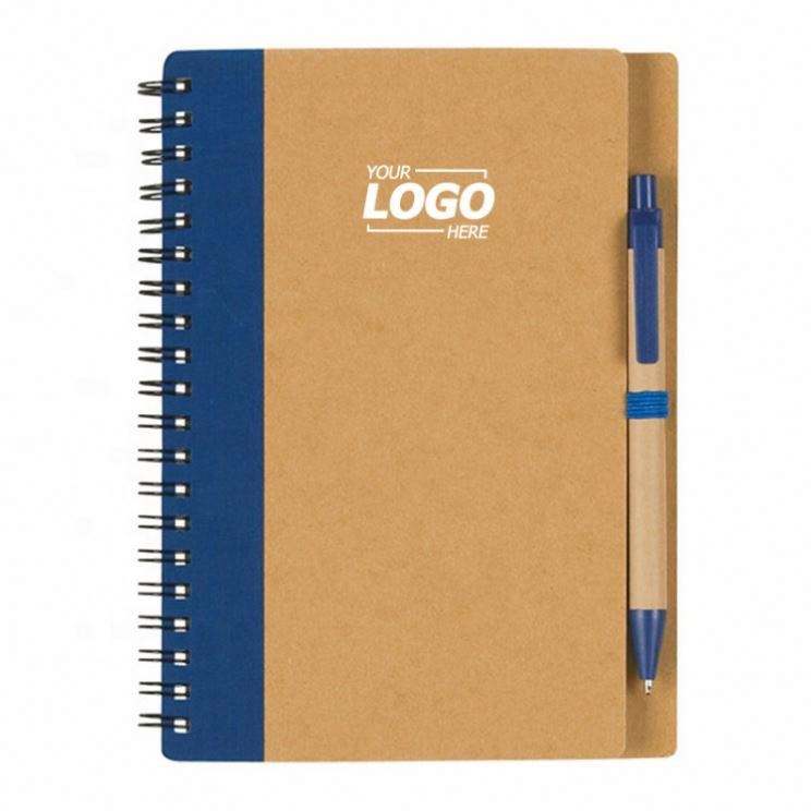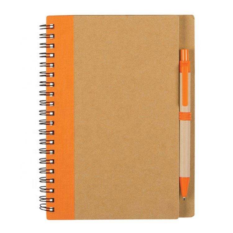 Set de Cuaderno Espiral y Bolígrafo Personalizados, Cubierta de Papel Kraft Ecológico, Bloc de Notas con Forro, Impresión UV para Diario, Set de Regalo Promocional