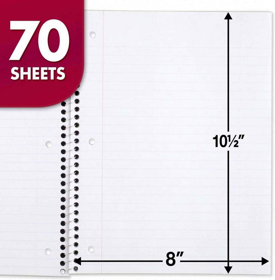 Cuadernos Espirales Personalizados, Paquete de 24, 1 Asignatura, Rayado Ancho, 70 Hojas, 7.5" X 10.5", Colores Surtidos, Papel Portátil para la Escuela y la Oficina