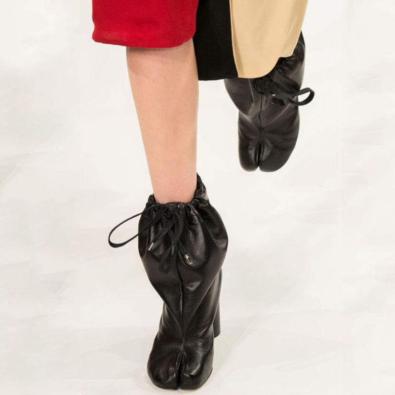 Botines de tacón alto con punta dividida personalizados, botines cortos elásticos de encaje para mujer, sexys y de estilo casual.
