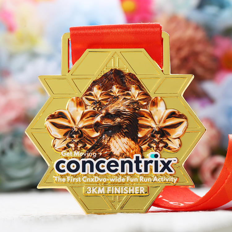 Nombre del producto:Medalla de metal para carrera 3k Fun Run chapada en oro brillante