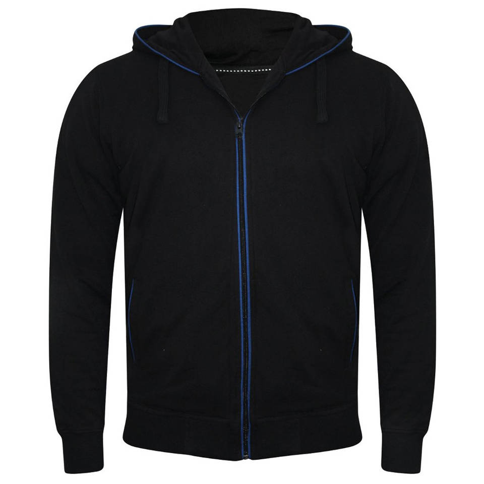 Chándales deportivos personalizados con ribetes reflectantes Hombres Negro Ligero Algodón Fleece Windbreaker Zip up Hoodie Set